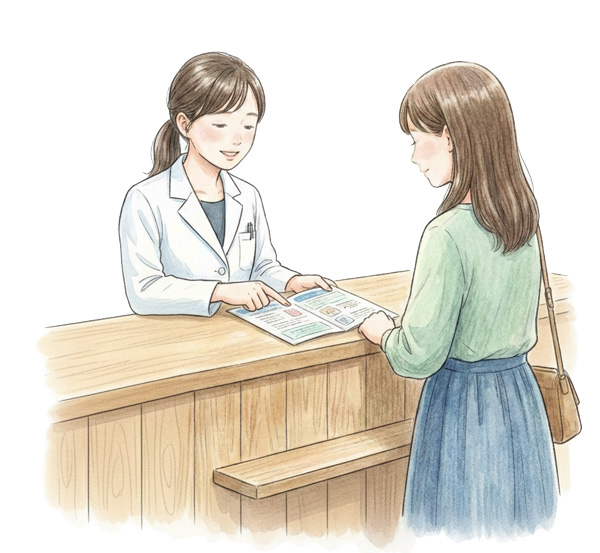 - STEP 3 同意書にサイン後、お会計。薬剤師の前で服用します